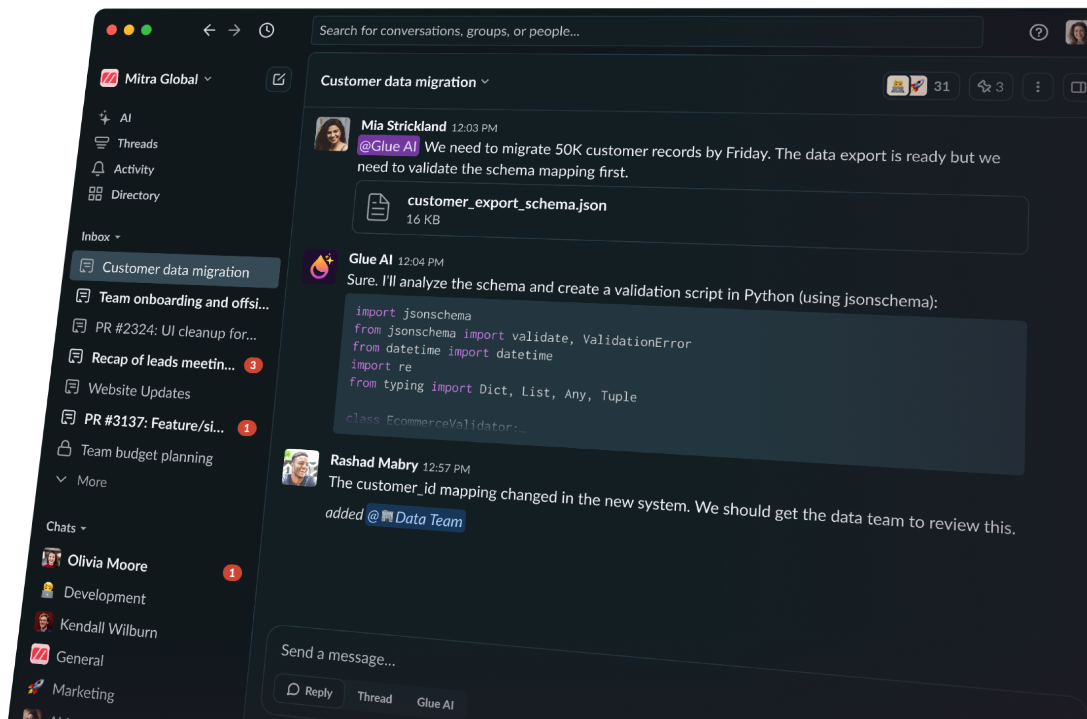 Glue puts context-aware AI at the core of your team’s workflow, making every conversation more useful and every goal closer.